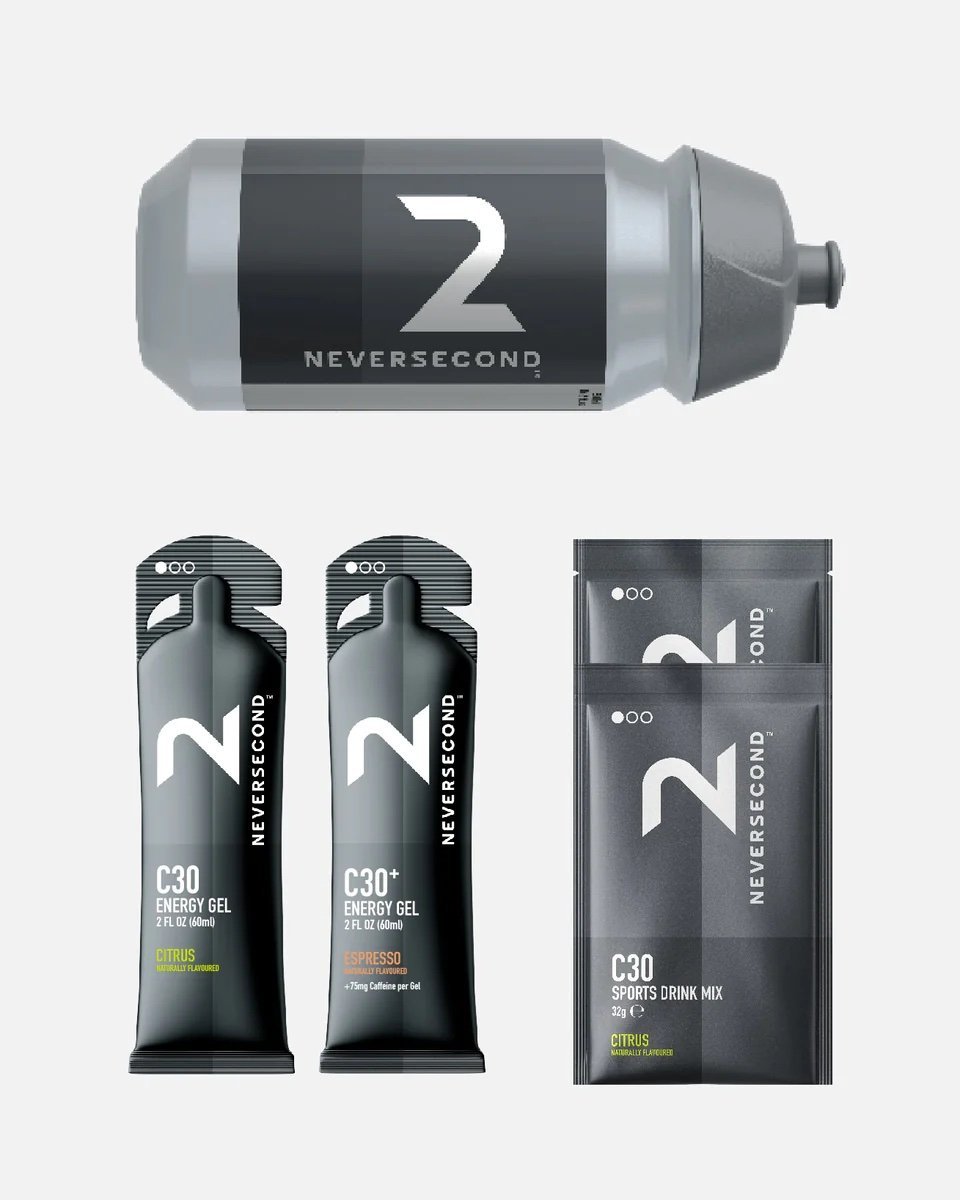 Incluye: 1x C30 energy gel citrus, 1x C30+ energy gel espresso, 1x C30 sports drink mix citrus, 1x C30 sports drink mix forest berry, 1x caramañola 500ml n2.