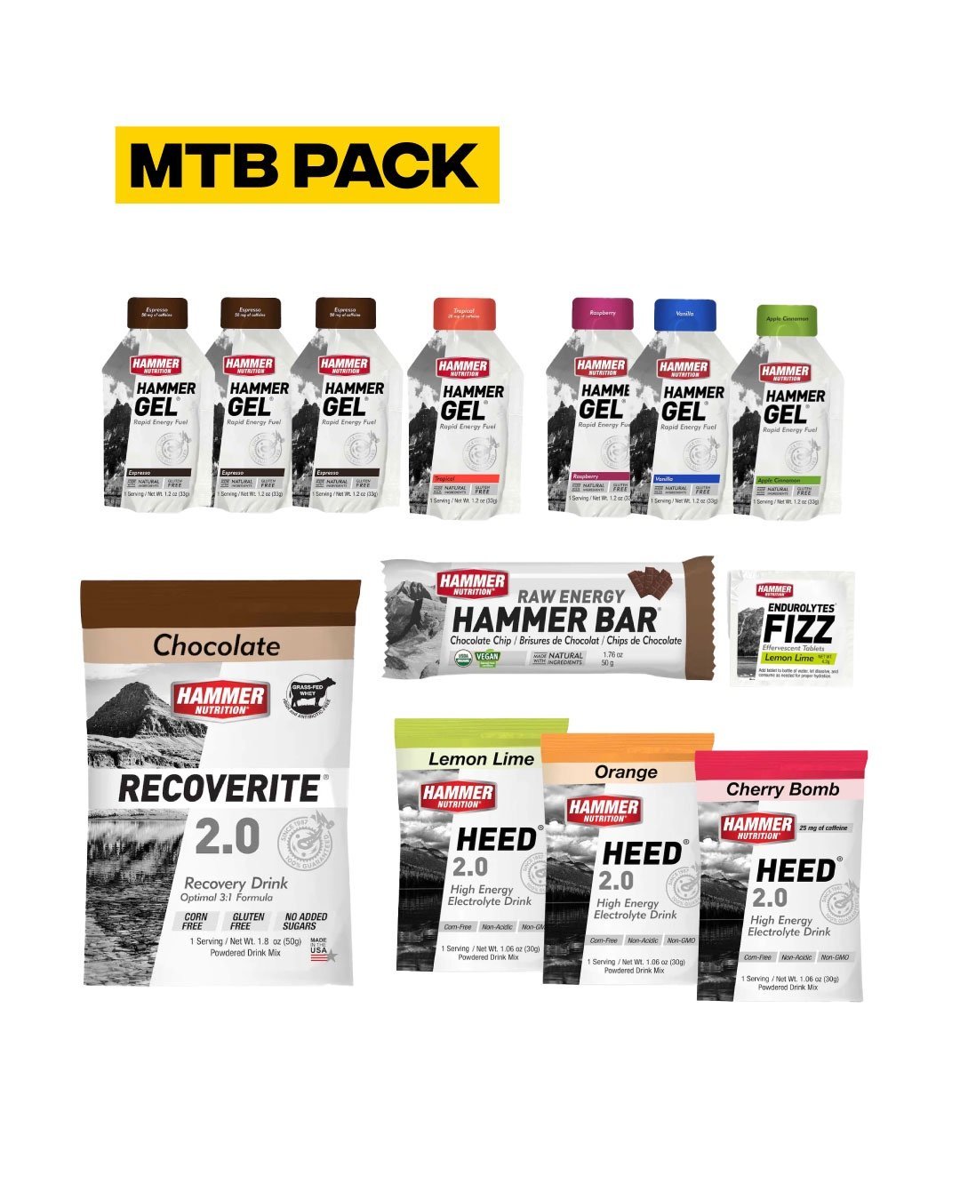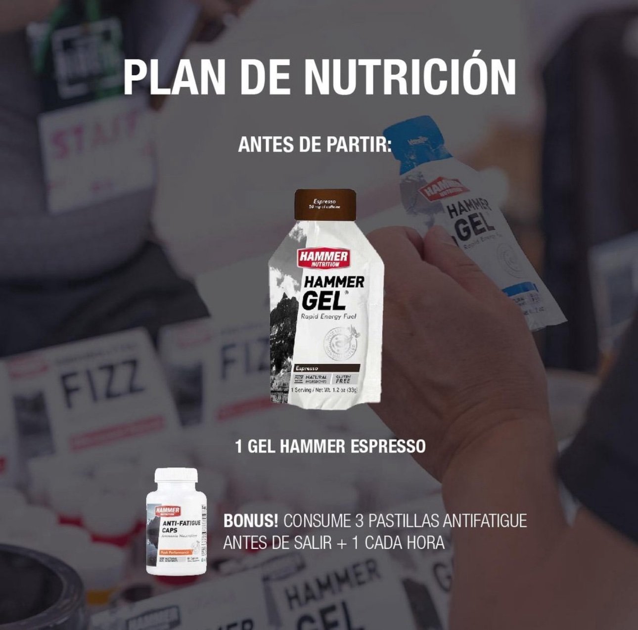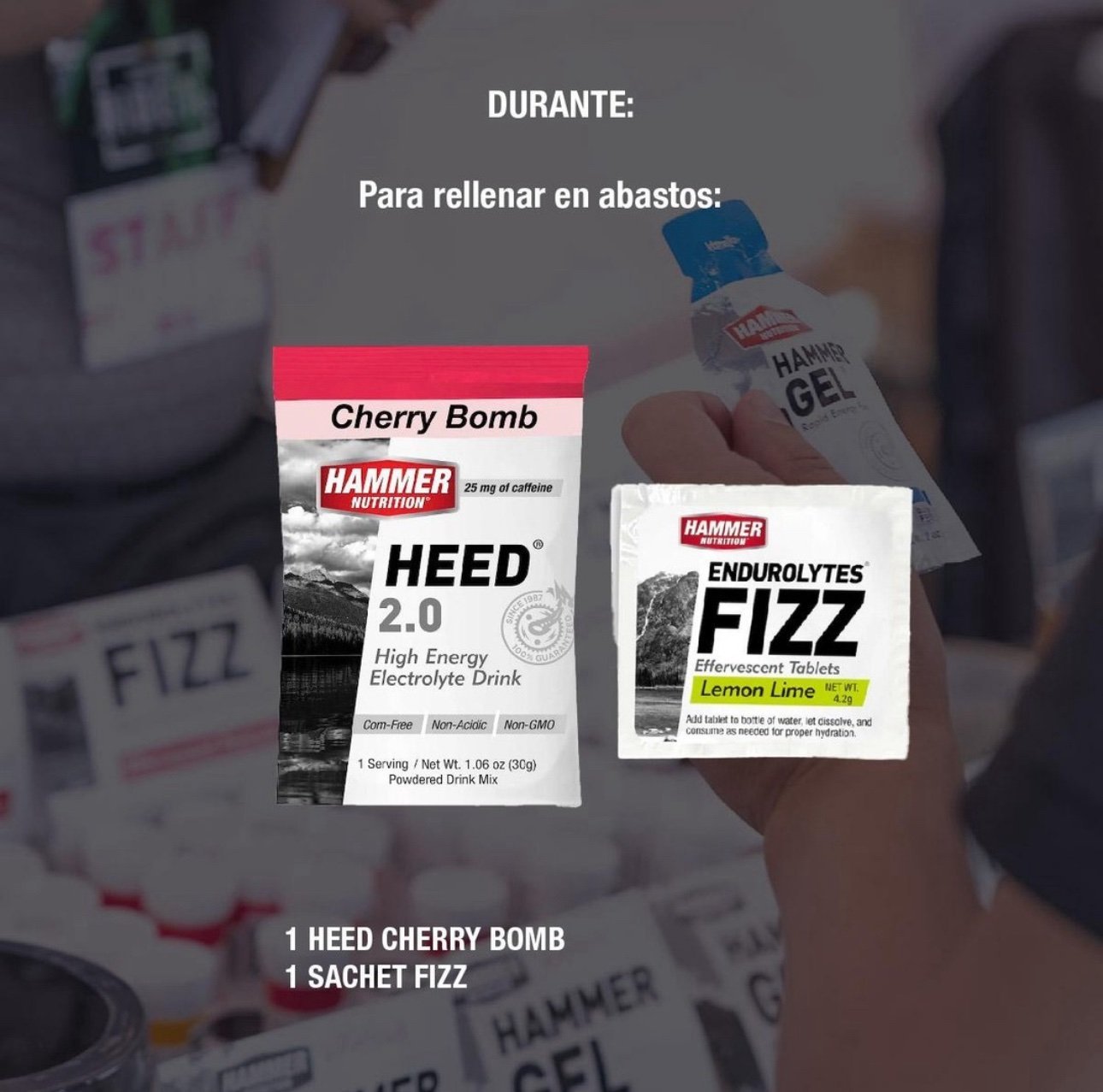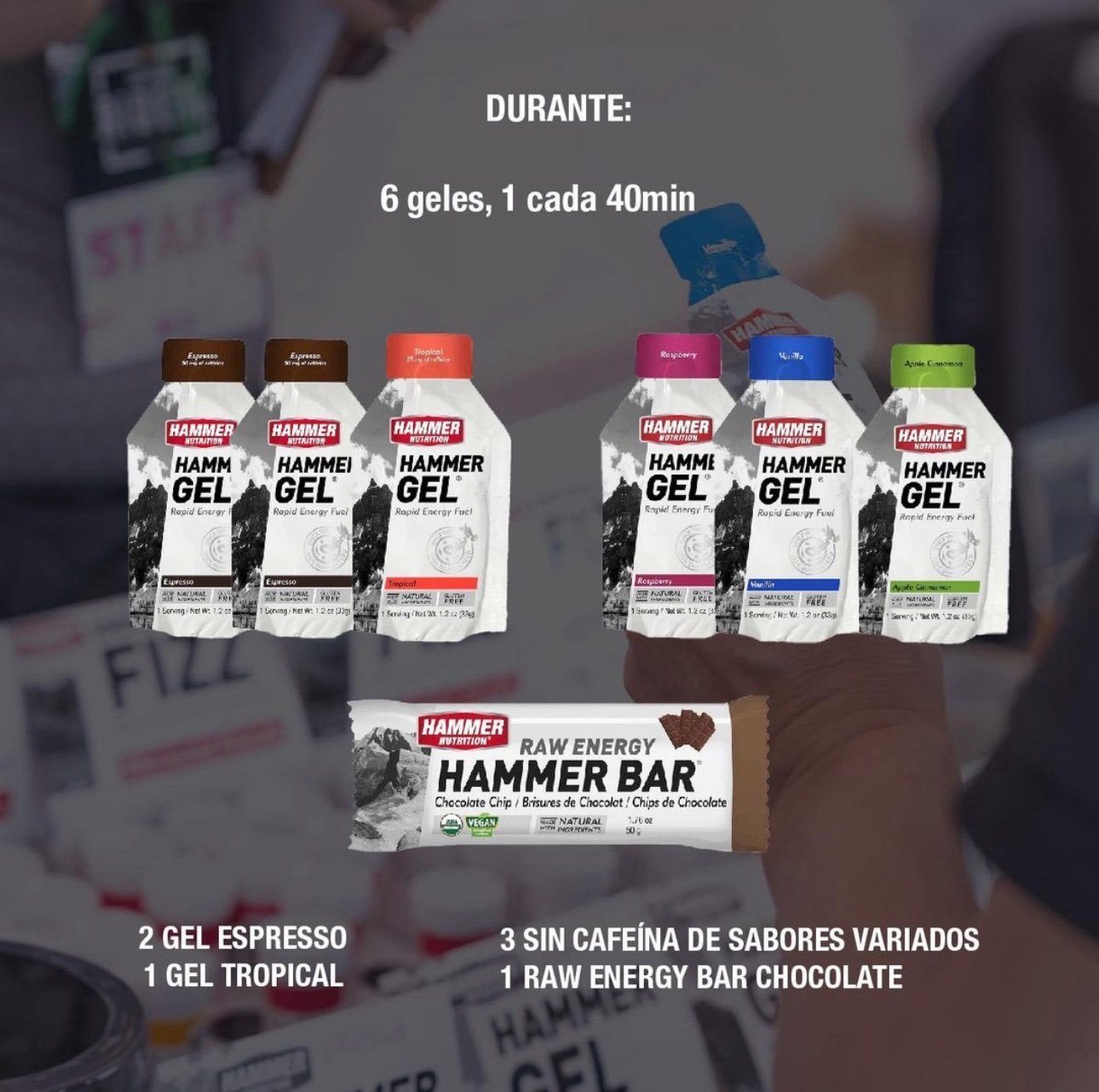 Un kit nutricional de Hammer Nutrition para una carrera estimada hasta de 5h con todo lo que necesitas en energía e hidratación.